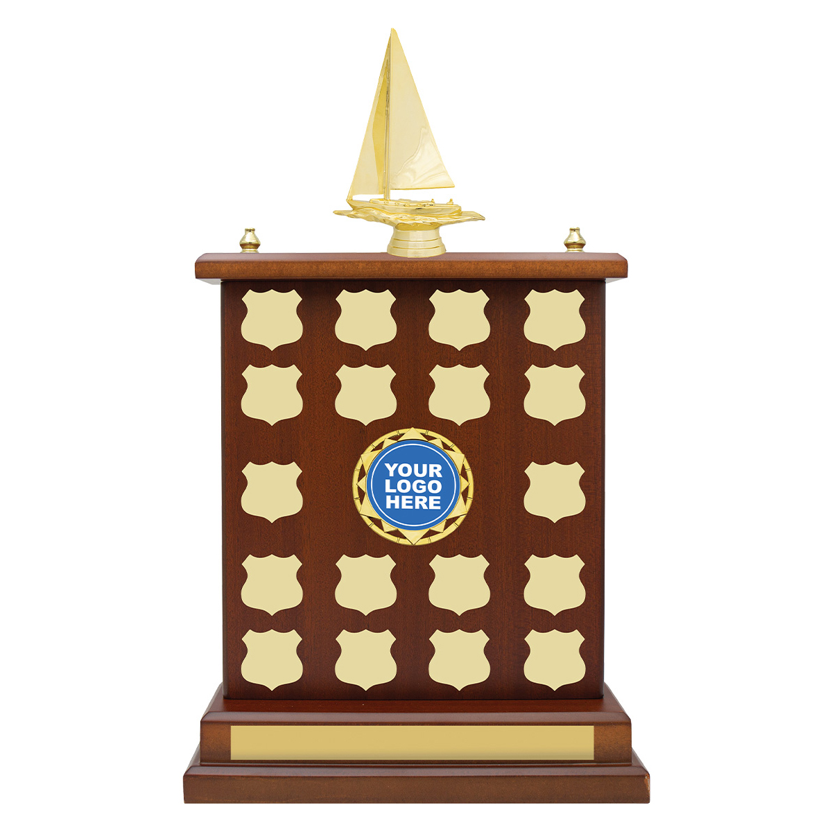 Outstanding perpetual trophy with ample space for your engraving – select holder for your logo and top for your sport or activity.