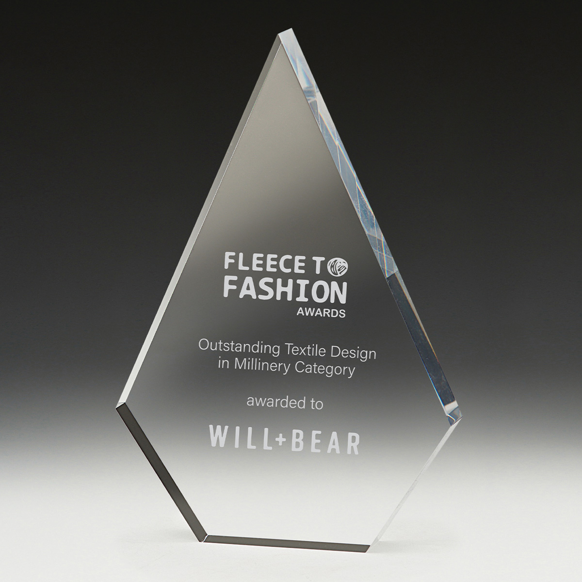 Free standing Ajax Acrylic in iconic arrowhead shape offers a versatile award for your custom personalisation.