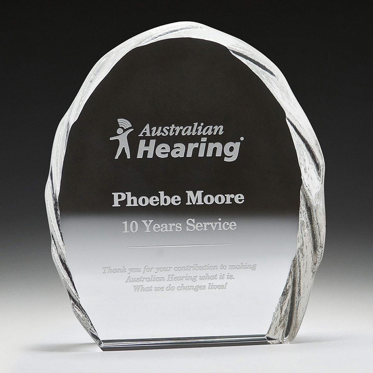 Effective corporate award with ample space for personalisation. Available in 3 sizes and supplied in presentation gift box. The ‘Tundra’ features dramatic frozen like design.