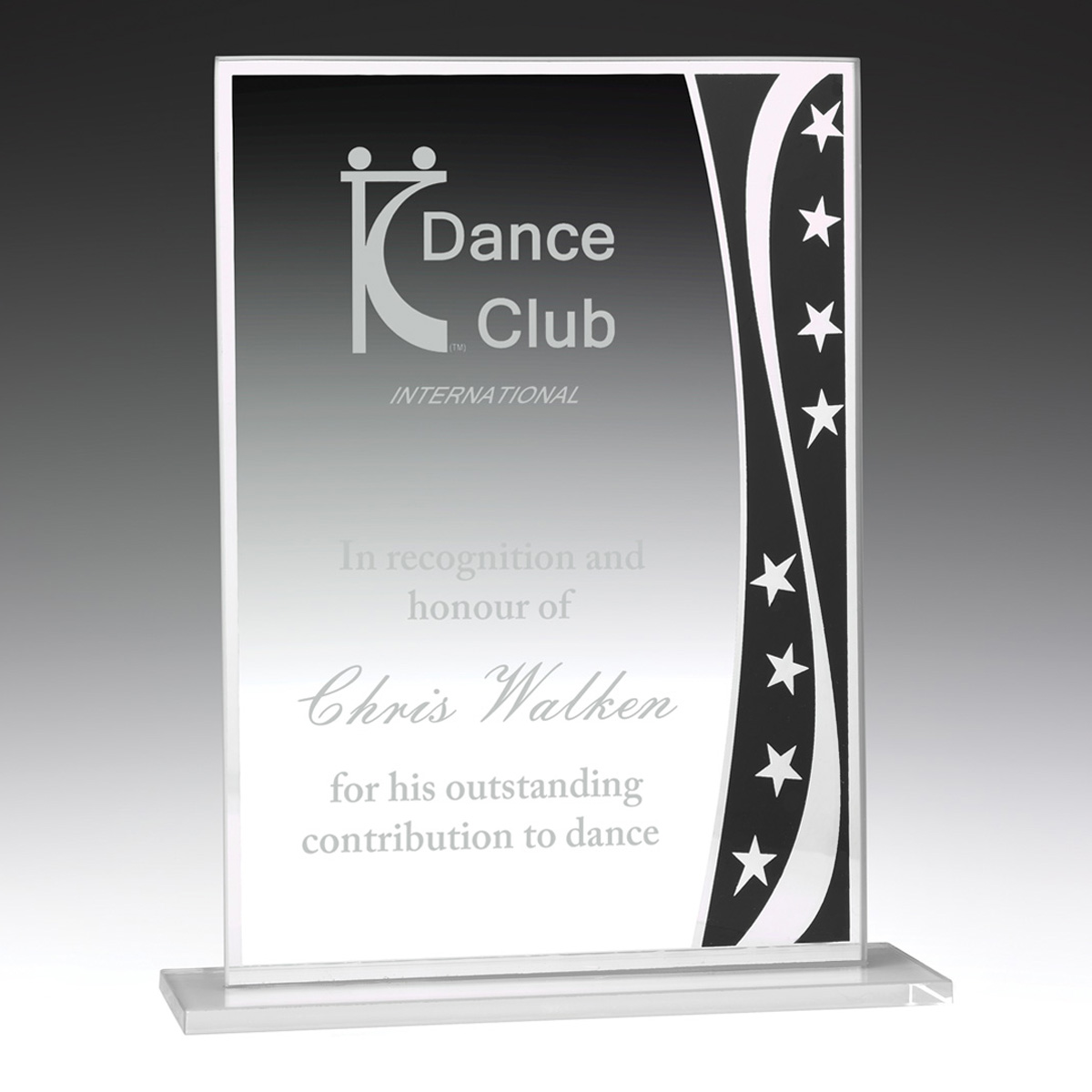 Fantastic glass award series, the Stargazer offers different colours with this super attractive design that features reflective stars.