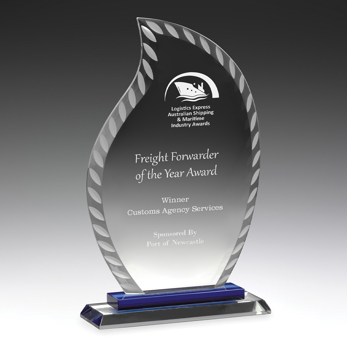 Different design of glass awards, the Aqua Glass features unique texturing, and a design elevated by the blue base element. The series is available in 3 impressive sizes, in a presentation gift box and the distinctive shape and design of these awards may complement your field of activity or industry.