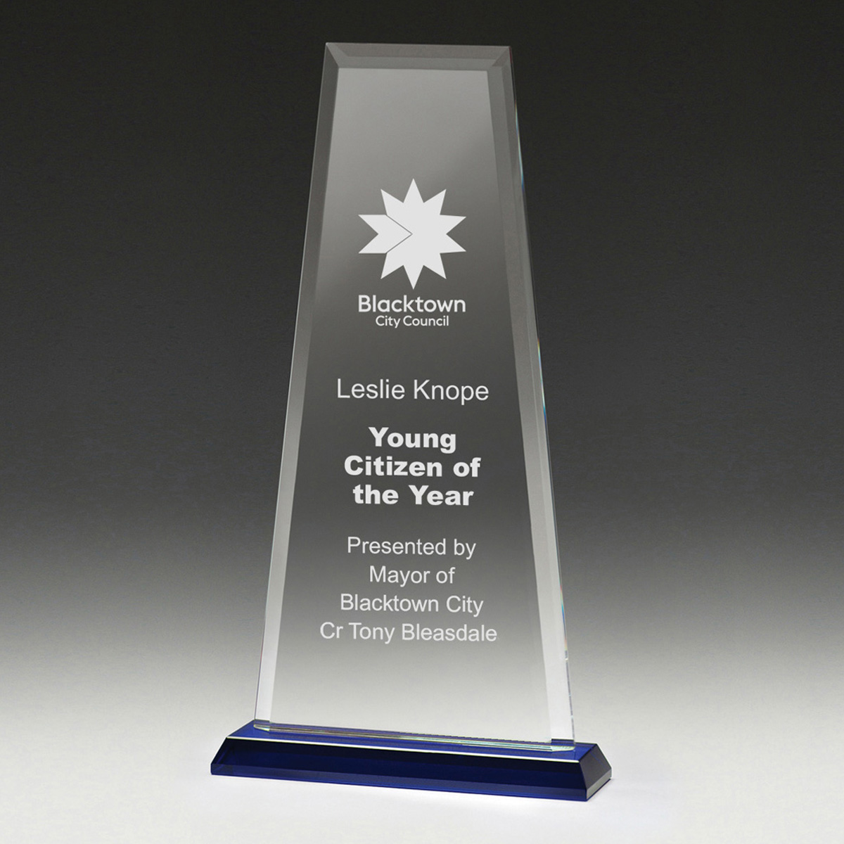 The Guardian Awards feature a distinctive tower shape representative of success & achievement. Choose colour most appropriate for your awards event.