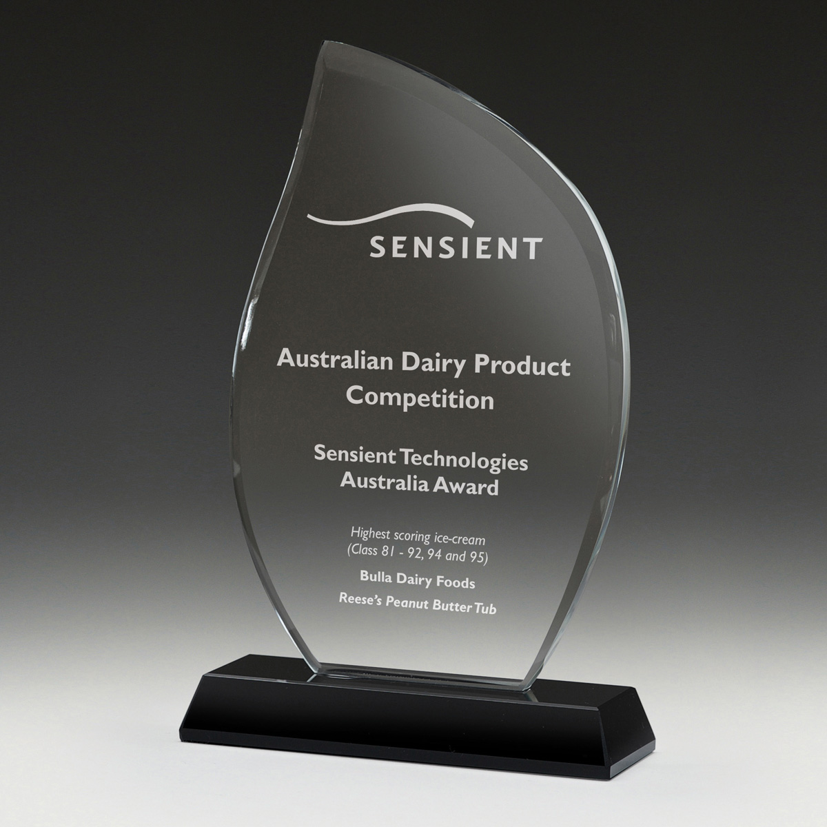 The Glass Cirrus Series of corporate awards offers an elegant teardrop style award framed by the black glass base. Supplied in gift box, this versatile award may be well suited to your event or presentation.