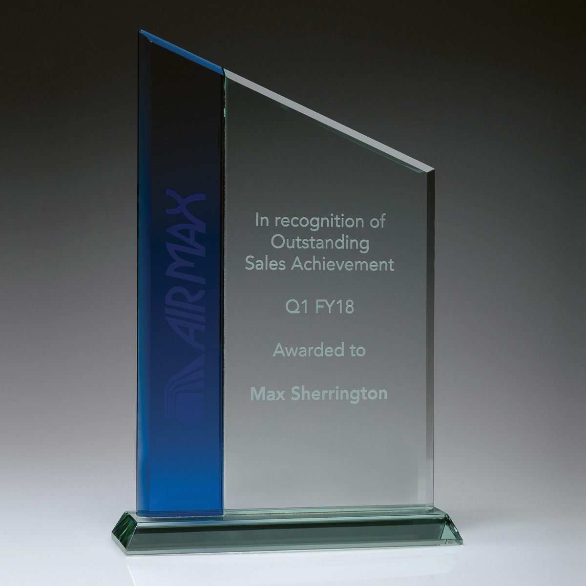 The Jade & Blue Peak series is a big seller with the ‘peak’ design popular for corporate and achievement style awards events. The jade and blue elements combine to present an impressive design.