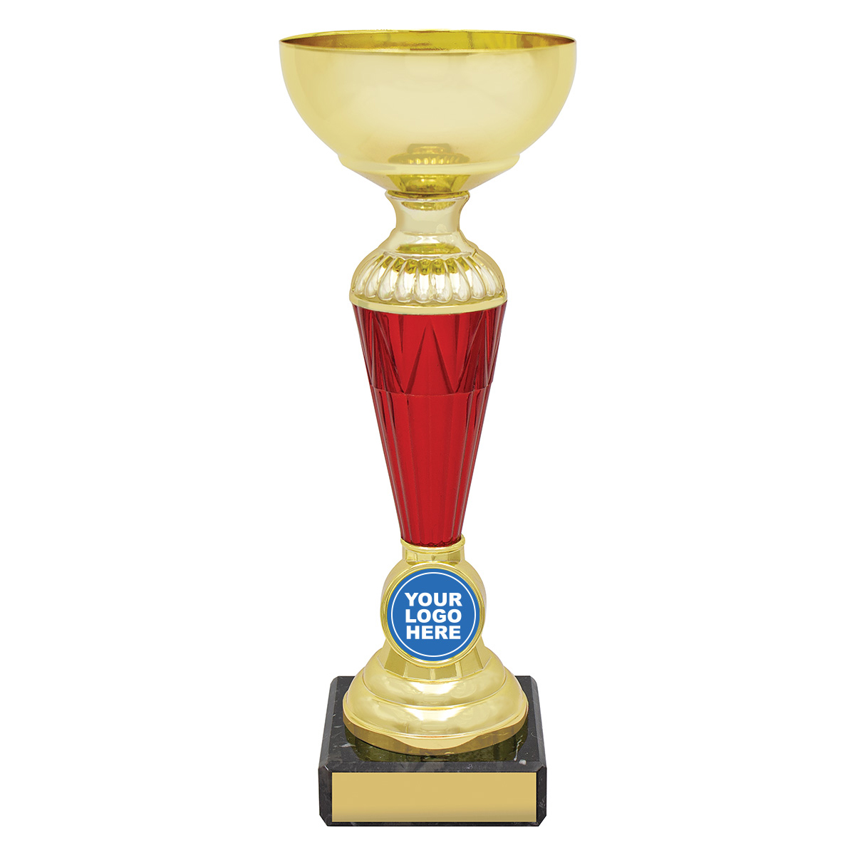 Appealing trophy cups feature red columns with space for your custom logo – over number of sizes providing options for you awards.