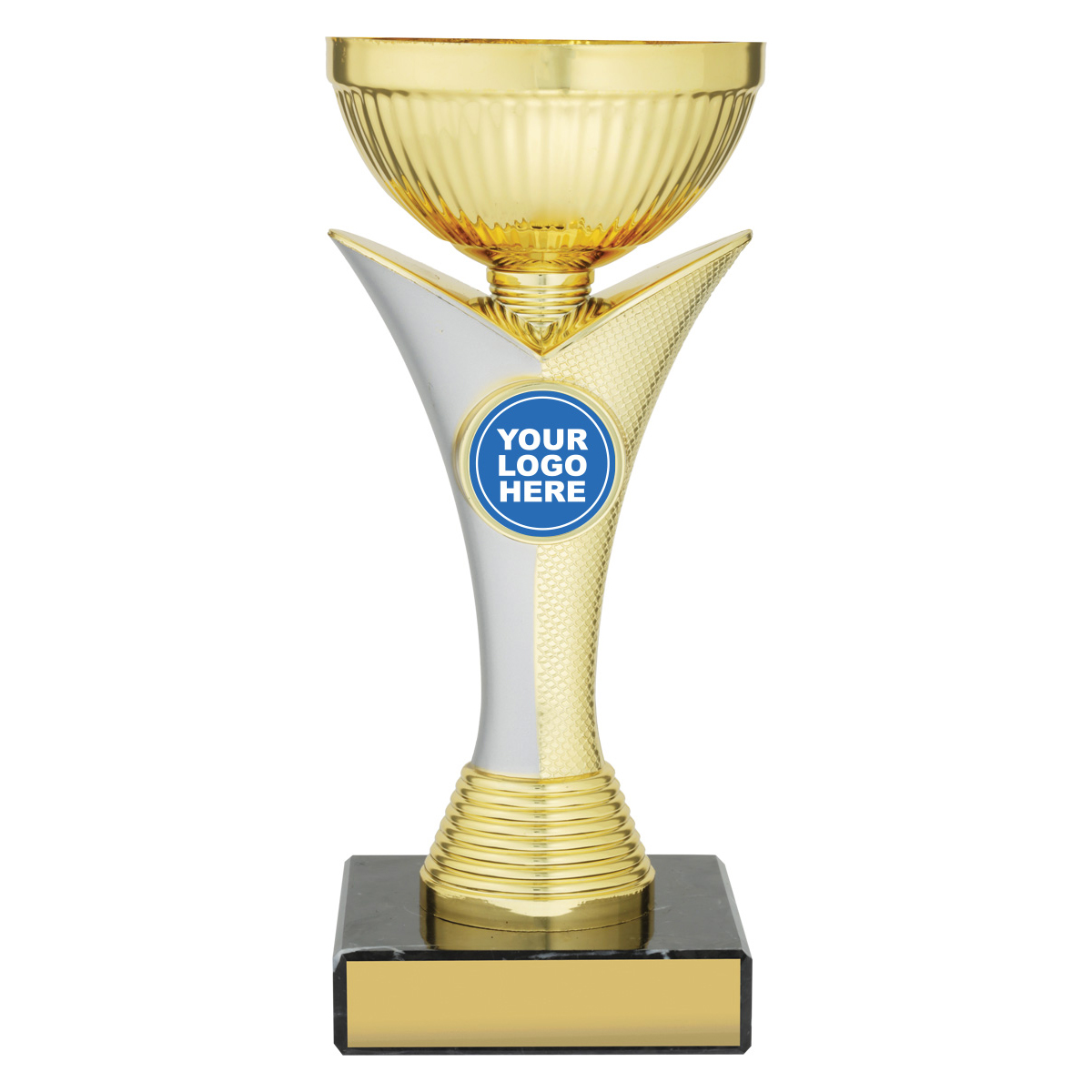Venus Cups offer a stylish cup trophy with metal bowl and brilliant gold and silver colour design. Available in 3 sizes.