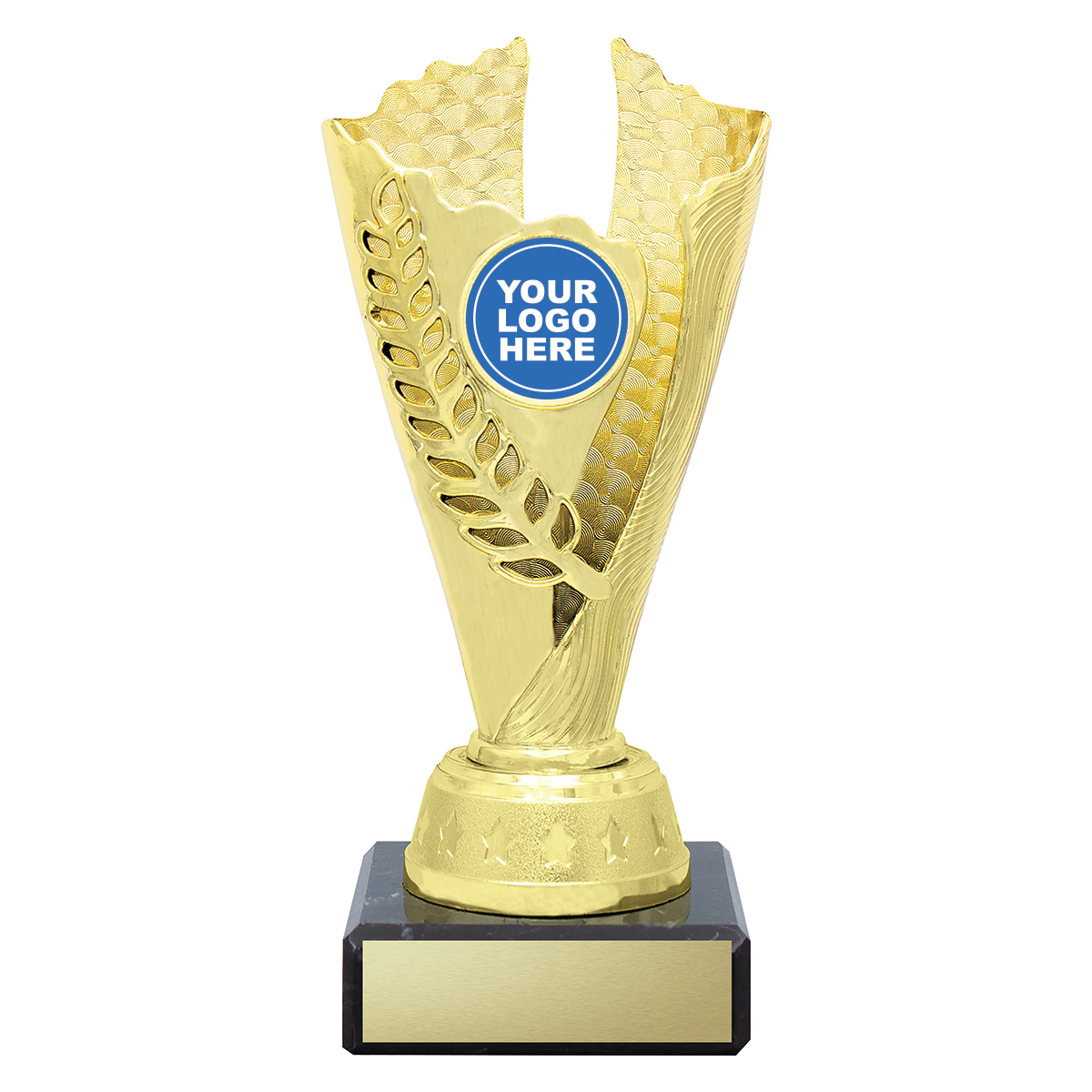 Visually stunning design of cup trophies with central space for your centre insert. Choose from multiple colour combinations to best suit the trophies for your event or competition. Iconic wreath cup celebrates the achievements of your award winners.