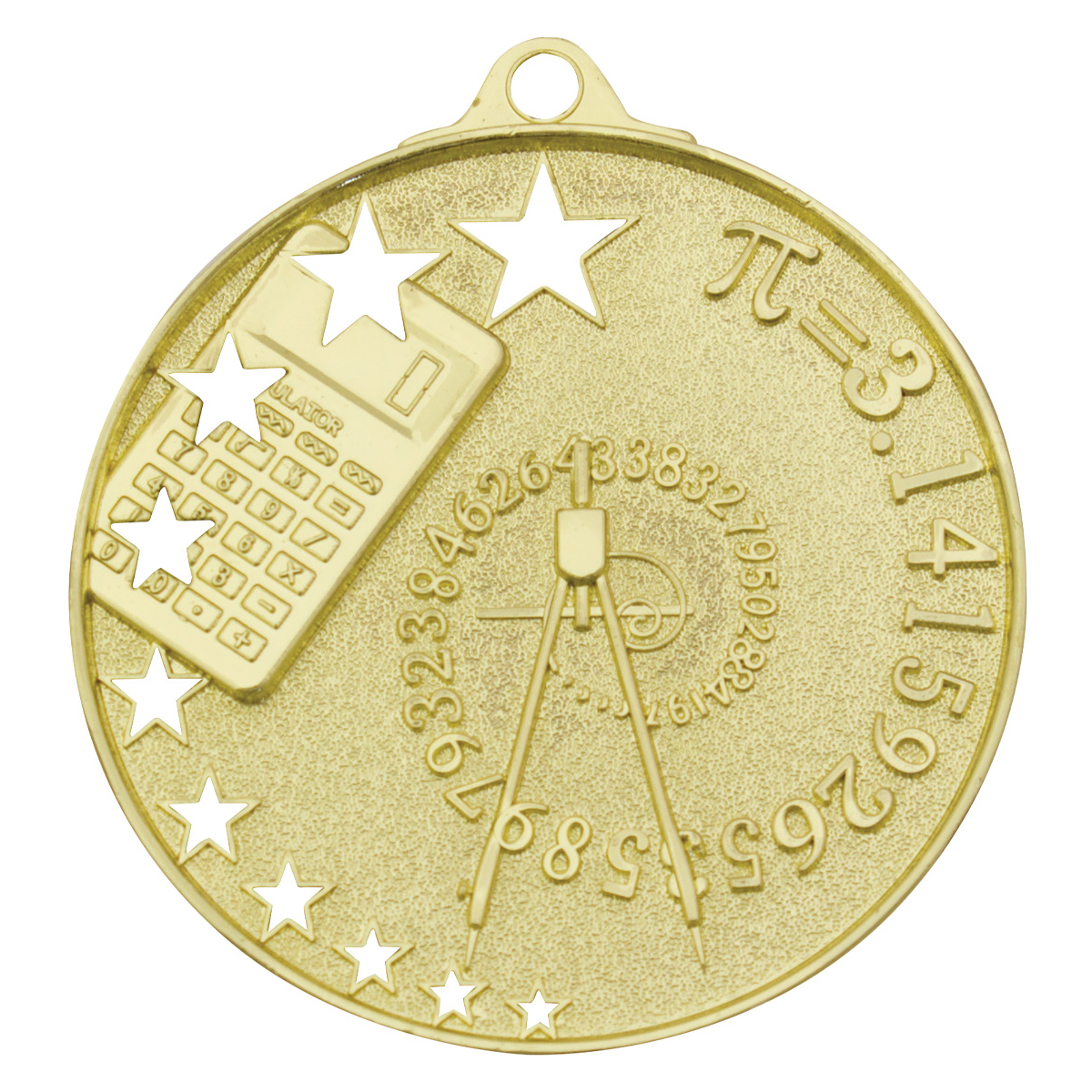 Exciting bright gold medal for academic excellence for Maths and Maths students. A popular medal series, the Star Series features a unique hollow multi-star design and extra thick edge with a rectangle panel on the back of the medal for your engraving.