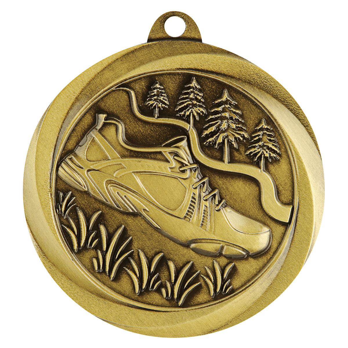 Econo Series of medals are perfect for all budgets and cover wide range of sports and activities. Medal design comprises of a cross country scene with running shoe and outdoor elements. Available in gold, silver and bronze – panel for engraving on back of each medal. Ribbons available in all colours.