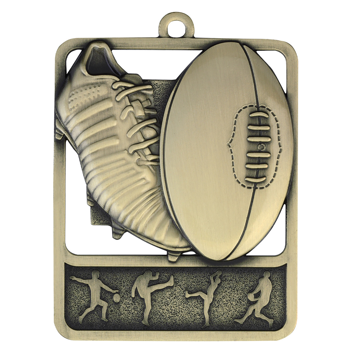 The Rosetta Medal series in gold, silver and bronze features a bold and innovative design. The Aussie Rules design showcases the iconic boot & ball combination with footy inspired silhouette players. Medal ribbons available in all colours and medal box options also to suit.