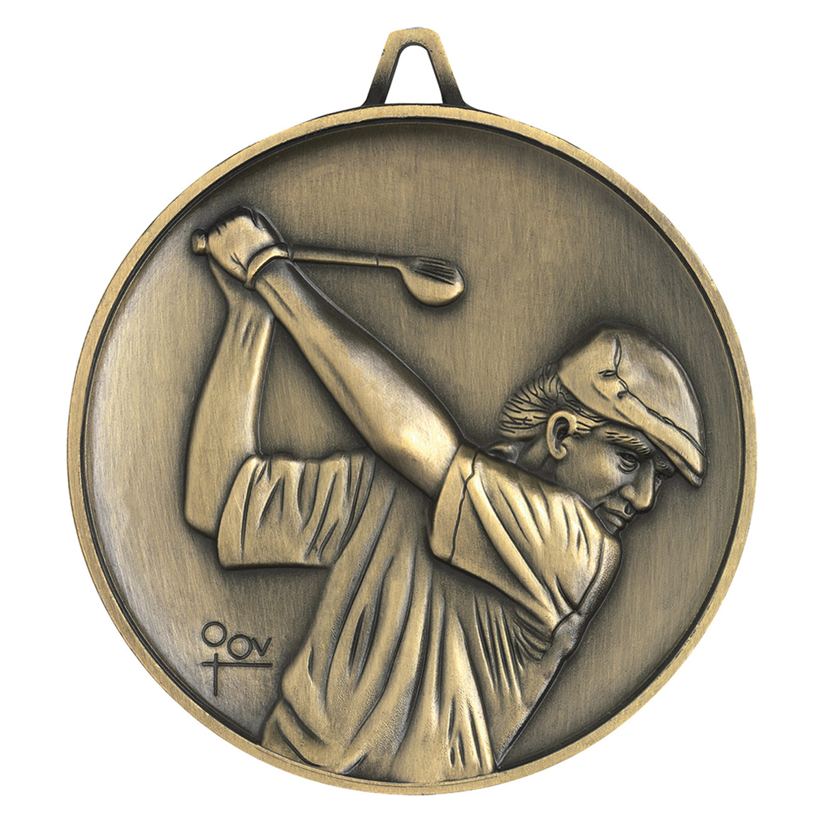 Heavyweight medals for Golf offer a substantial medal at a surprising weight – with excellent, detailed design featuring golf driver. Medals are finished in traditional antique gold – space on the back of the medal for your engraving requirements. Ribbons of all colours available.