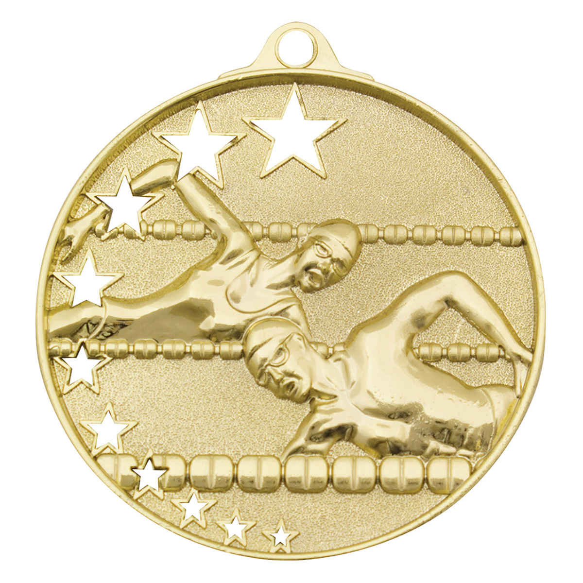 Bright gold, silver and bronze medals for Swim. A popular medal series, the Star Series features a unique hollow multi-star design and extra thick edge. There is a rectangle panel on the back of each medal for your engraving. Ribbons available in all colours and plenty of medal boxes to suit.
