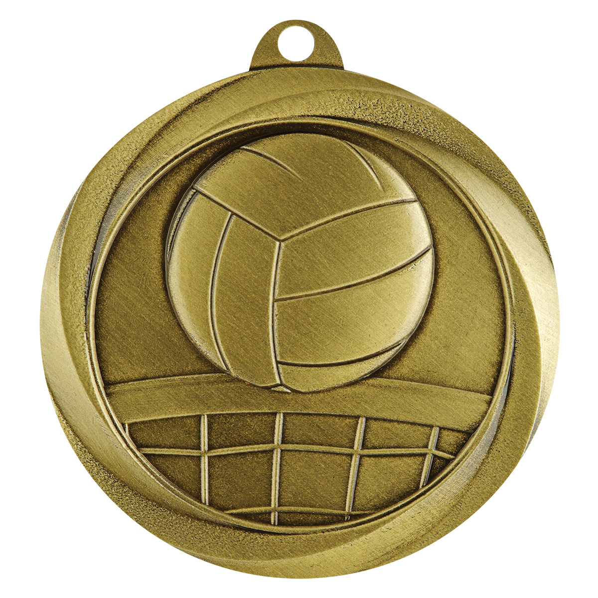 Econo Series of medals are perfect for all budgets and cover wide range of sports and activities. Volleyball medal offers an elegant design featuring the ball and net. Available in gold, silver and bronze – panel for engraving on back of each medal. Ribbons available in all colours.