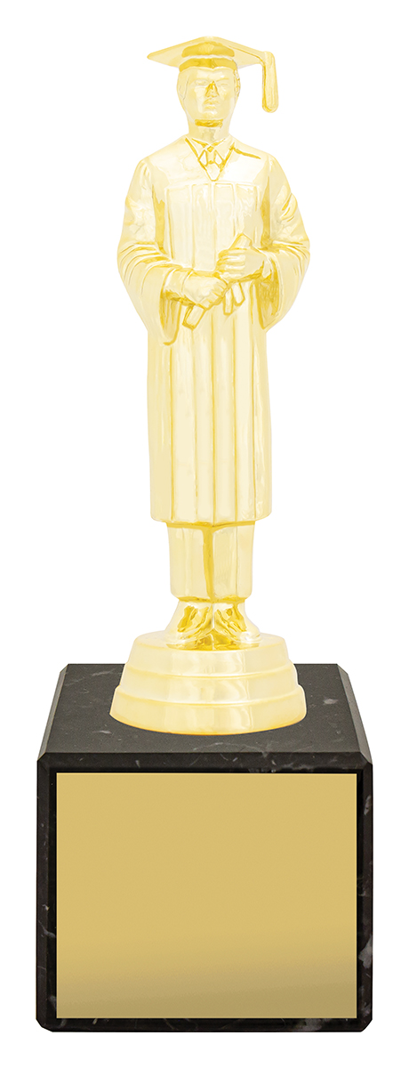 Simple but effective series of trophies for your presentation – bright gold top representing your activity on series of prestige European marble. Male and female figurines available.