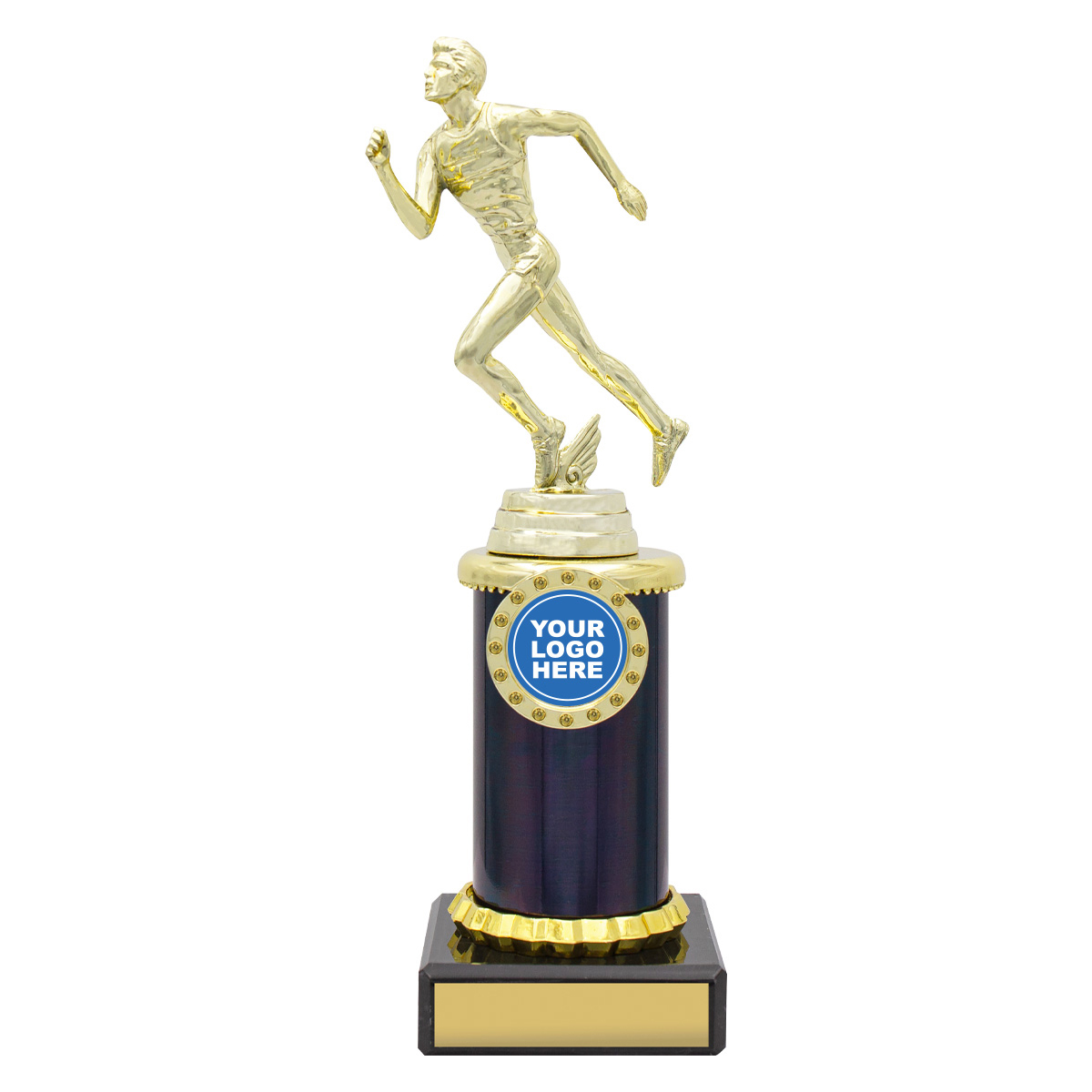 Super value trophies for athletics over number of sizes – available in different colours to suit your event. Central space offered for your custom logo.
