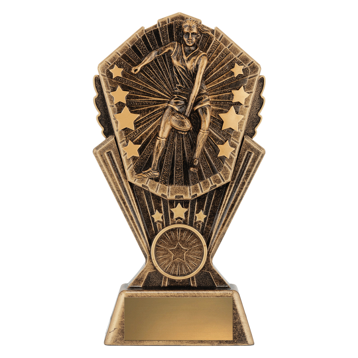 Brilliant series of trophies – the ‘Cosmos’ available in many different sports and activities. For Aussie Rules there are male, female and footy theme designs perfect for a variety of awards. Extra-heavyweight 3D design combined with the detailed design of your choice. Available in 3 sizes with space for insert if required.