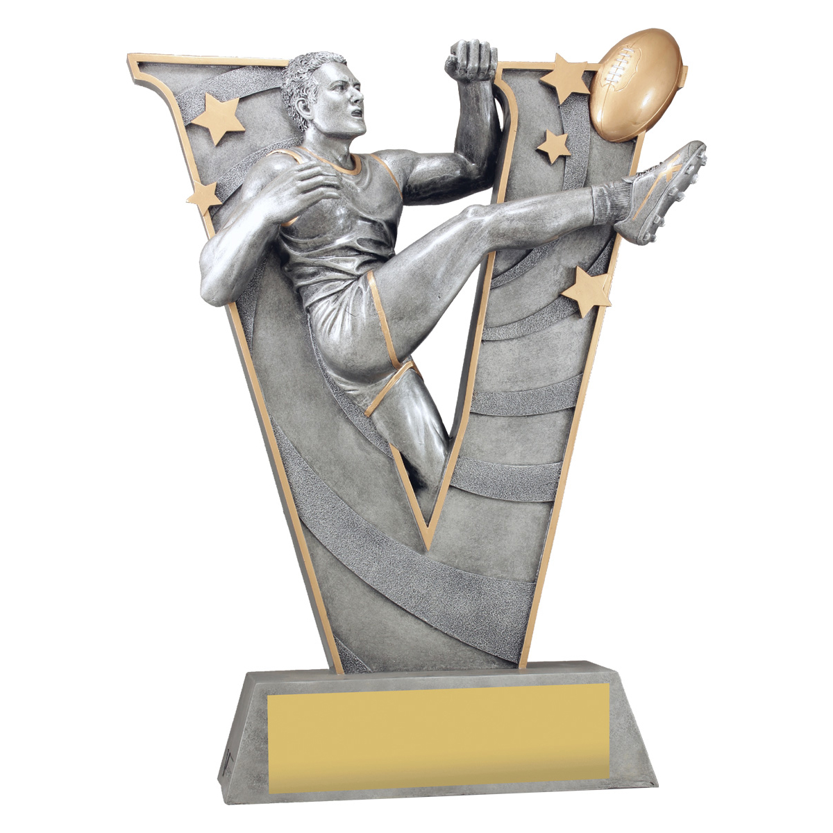 The biggest trophy in our range, the mega X size in Aussie Rules only is a great idea for that team or club event, or to present to that outstanding player or individual or to serve as an effect perpetual award.