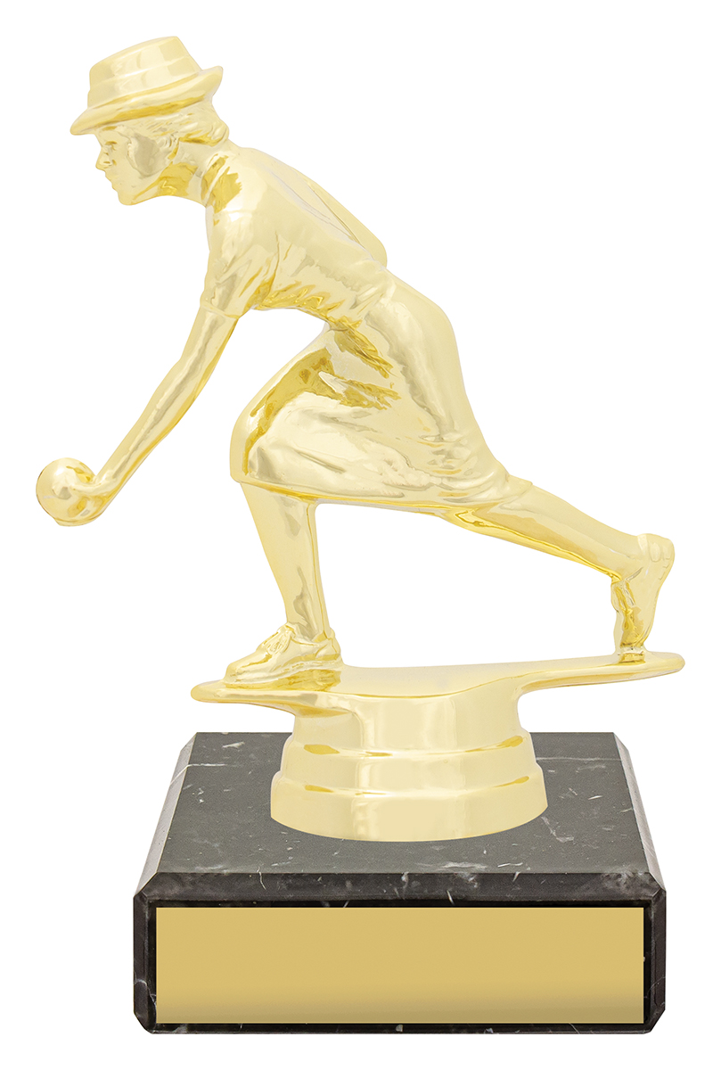 Budget trophy option to recognise the participants in your event or presentation. Traditional bright gold top for your sport or activity paired with black marble base for your engraving.