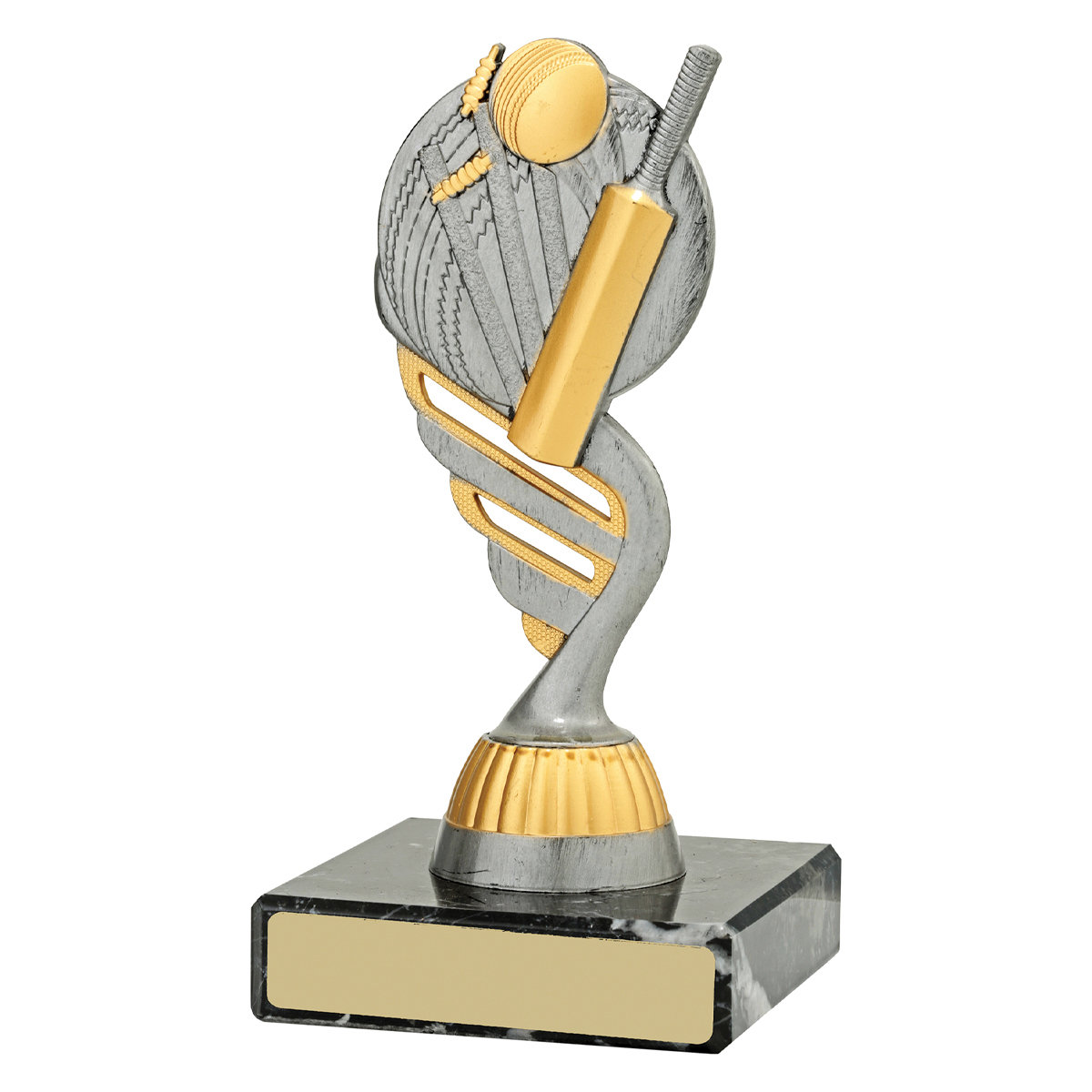 Cricket trophies available over multiple sizes finished with prestige black marble. Multi-part trophies adaptable to any sport, select the trophy figurine or top to represent your activity.