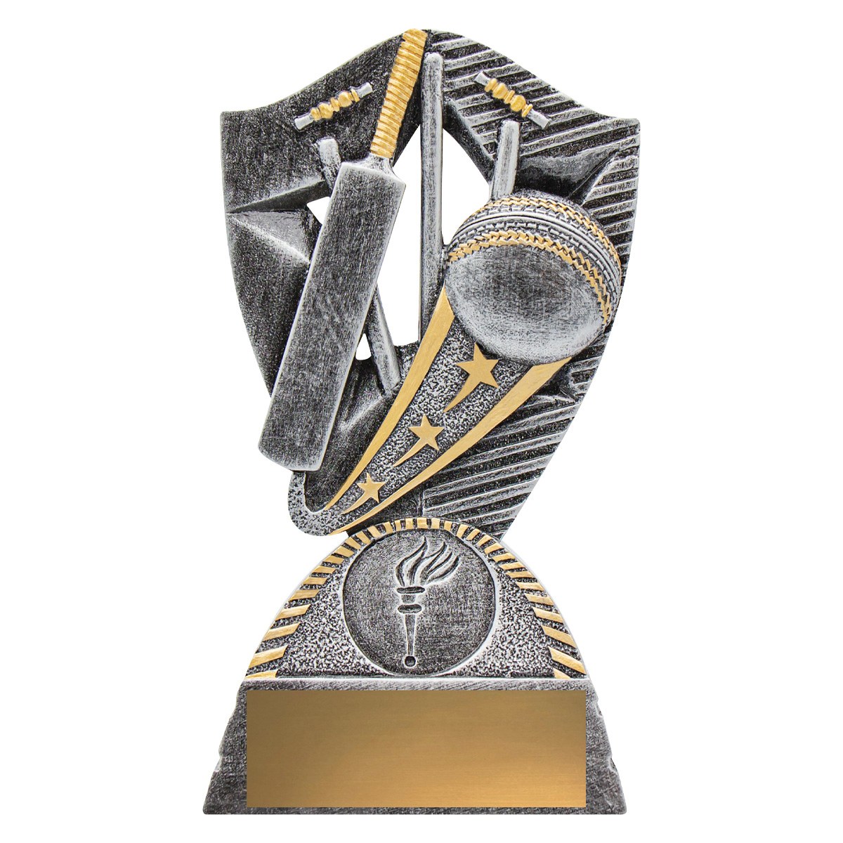 Brilliant design for the cricket trophies required for your team or club. The Gambit offers a dynamic theme in antique silver & gold – space for your custom logo.