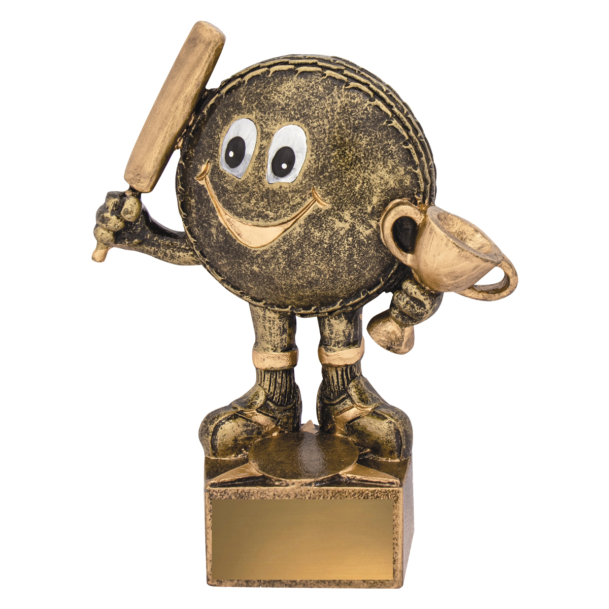 A popular and generic award choice for kids and junior Cricket players, the Mini Character Trophy features a charming cricket ball character and is finished in a classic trophy gold colour combination.