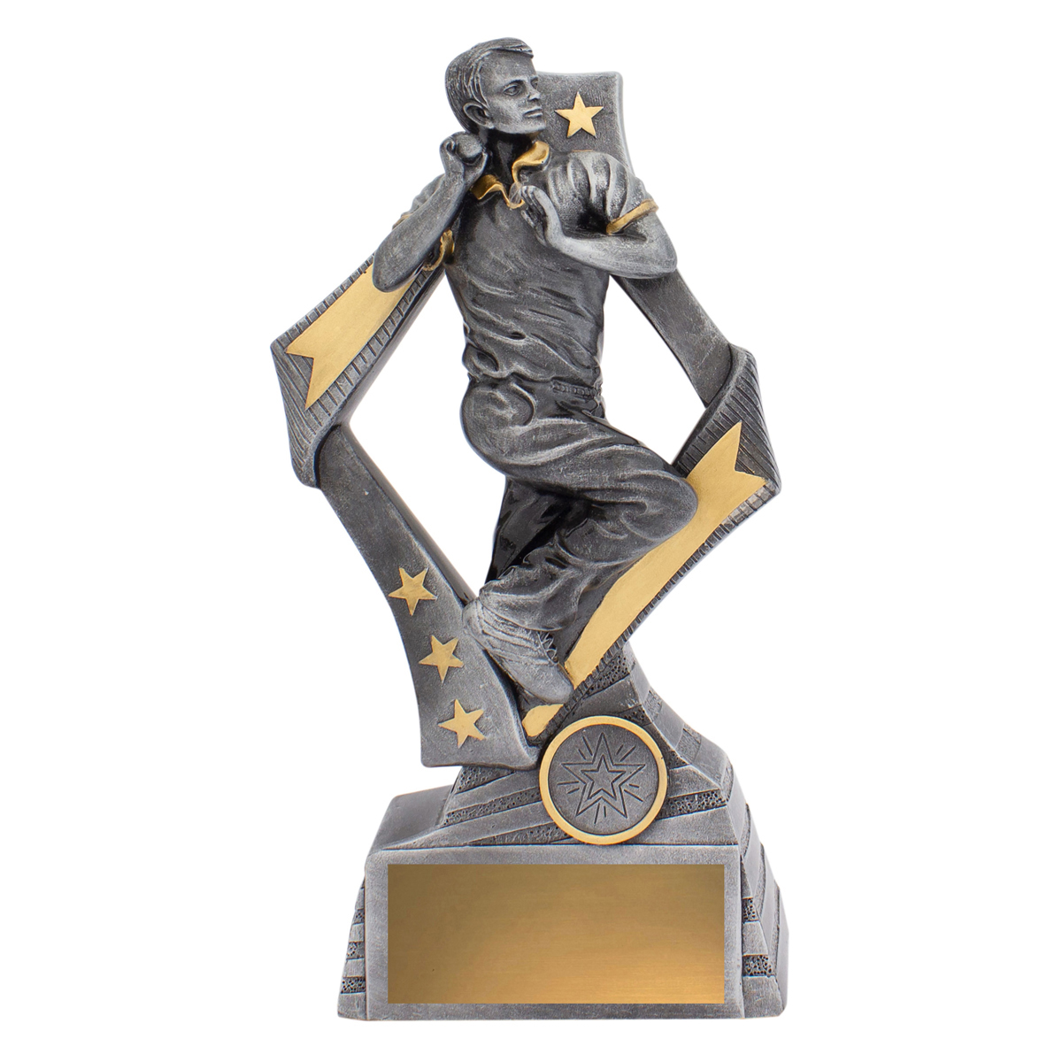 Inspiring design for your cricket trophies, Flag series features bowler in action and complete with classic antique silver colours. Substantial trophy with space for customisation if needed.