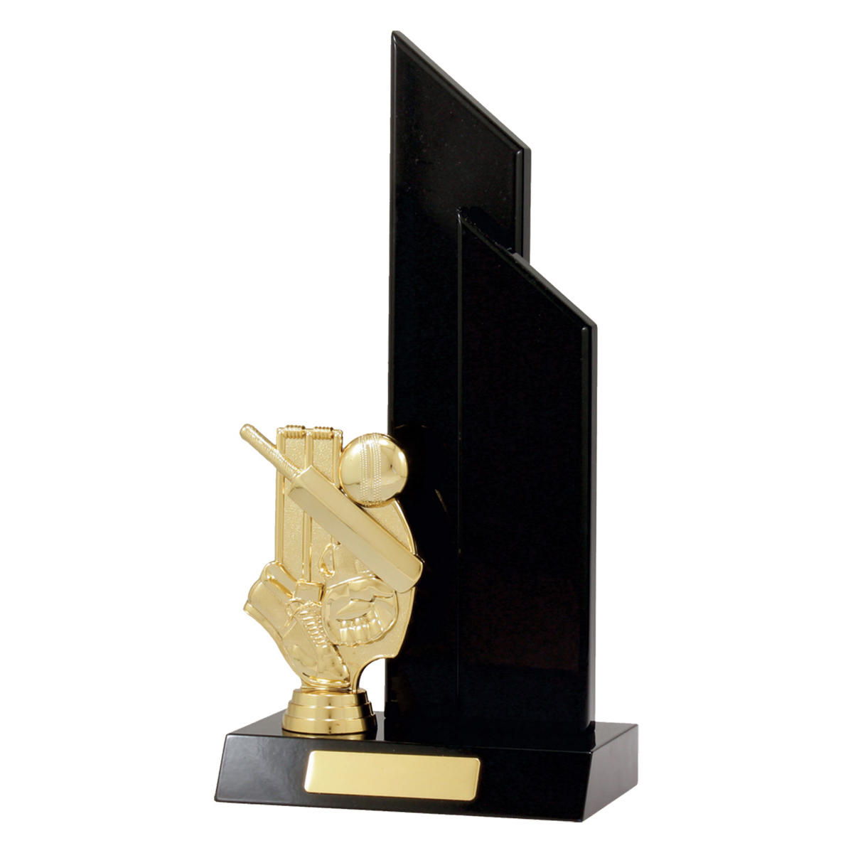 Substantial timber double wing trophies for cricket to award top performers. Multi part trophies adaptable to any sport, select the trophy figurine to represent your activity.