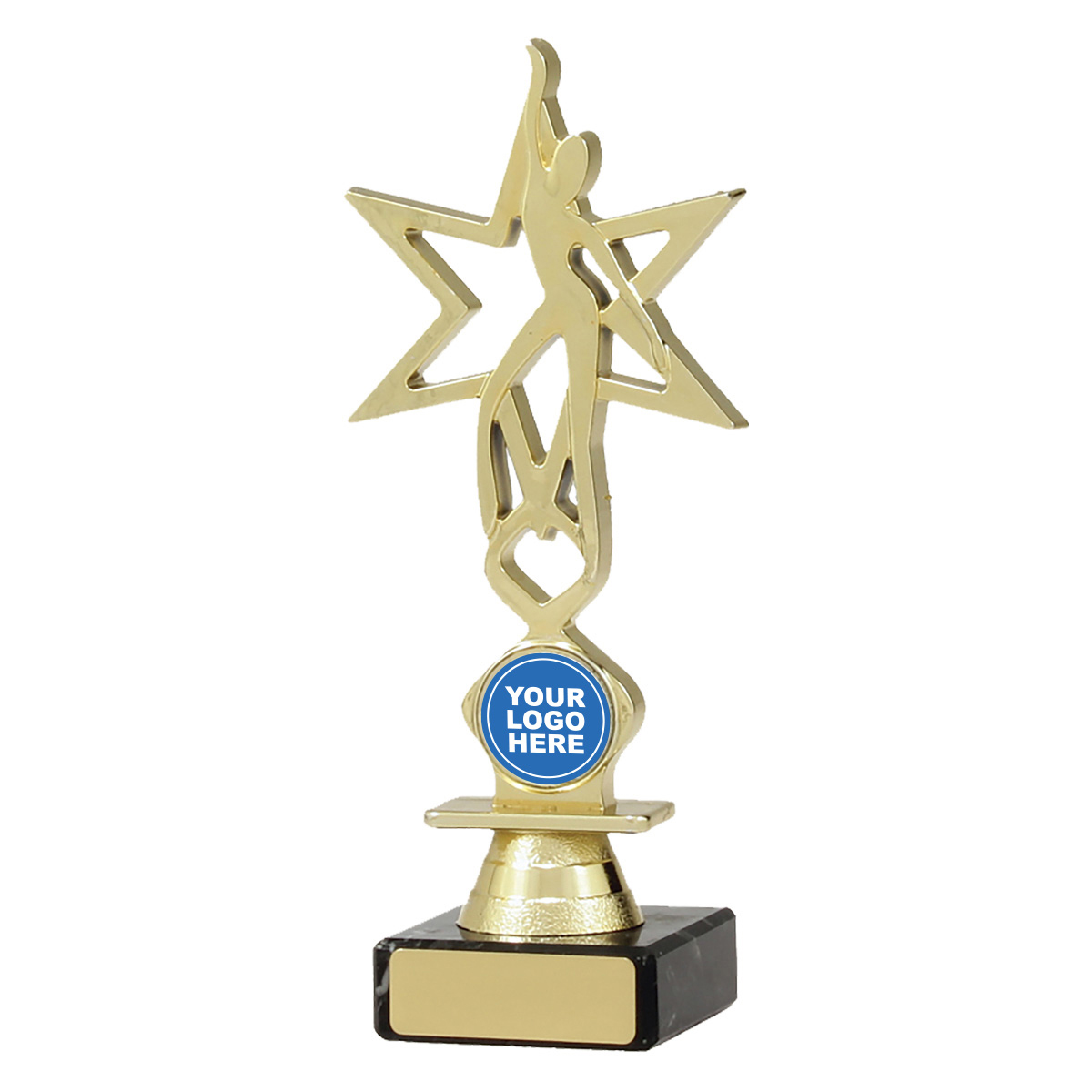 Series of dance trophies feature bright gold top representing an abstract dancer in star background. Effective design also allows for space for your 25mm insert.