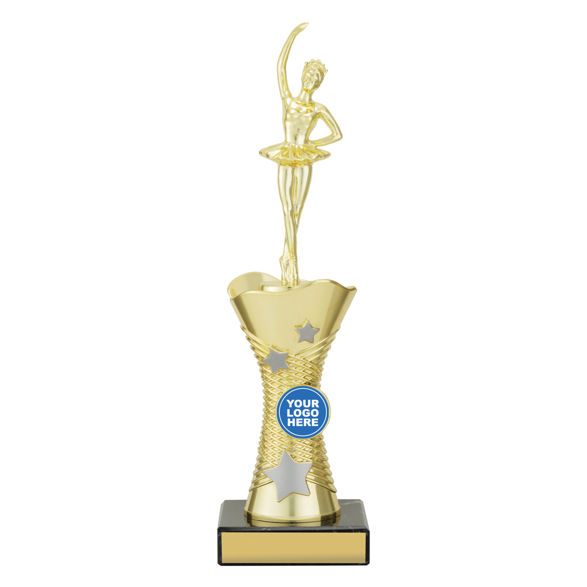 Wayfinder series features stylish star-inspired riser, classic black marble and space for your centre insert. Available in multiple sizes. Choose figure for your sport or activity.