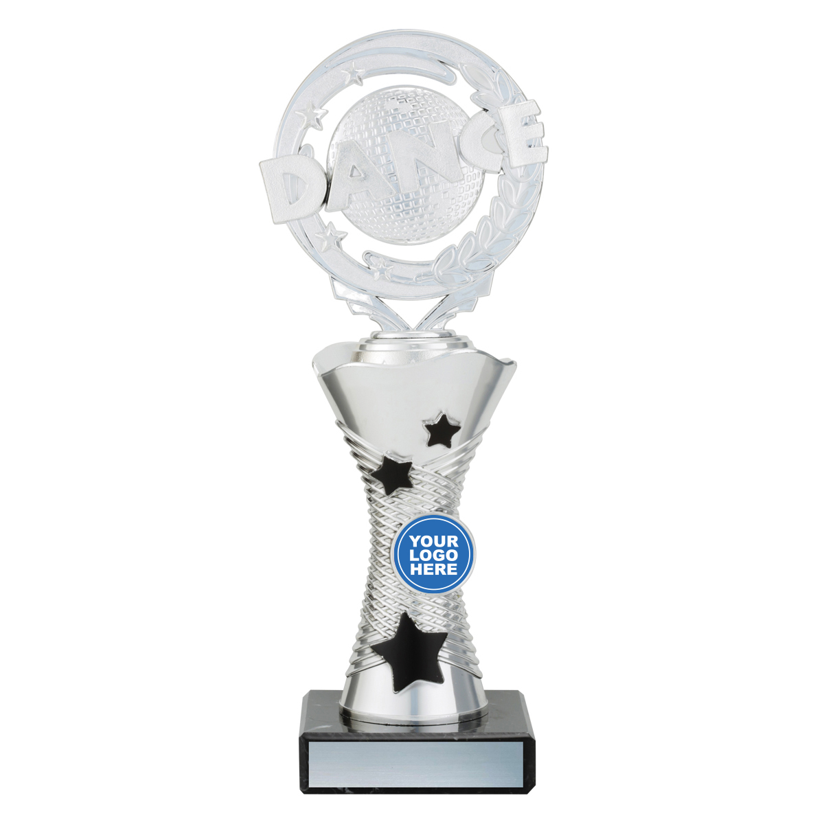 Wayfinder series features stylish star-inspired riser, classic black marble and space for your centre insert. Available in multiple sizes. Choose figure for your sport or activity.