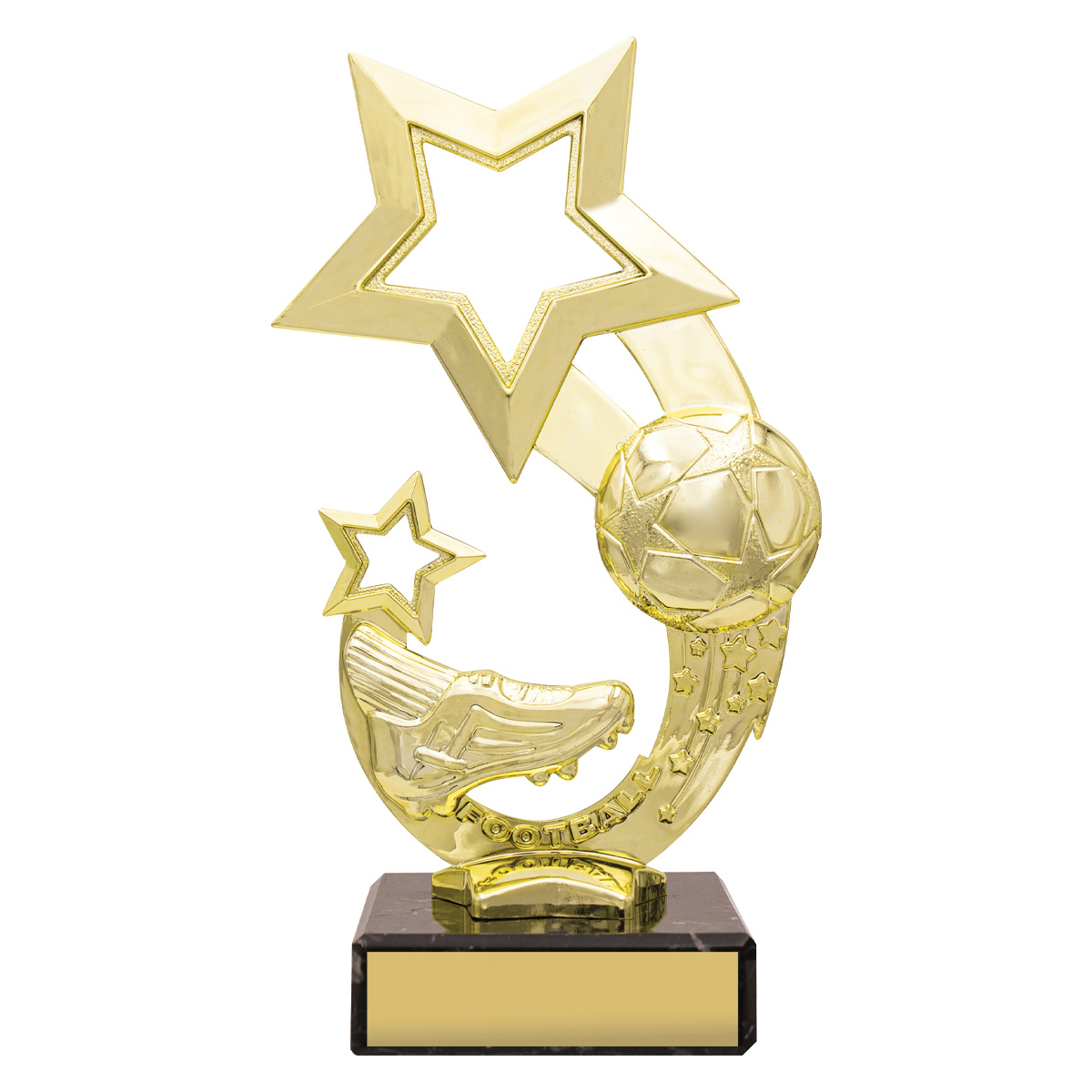 Dynamic design of football trophy – the Rising Star is perfect for your club participation awards.