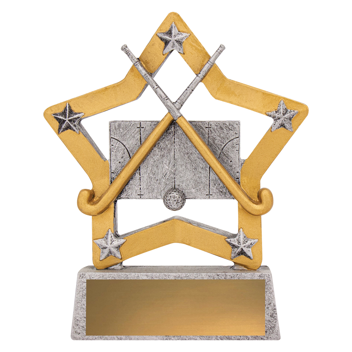 Affordable and popular Mini Star trophy for kids and players both male and female. An attractive star inspired design, classic silver and gold colours and at a budget price, hockey trophies are well suited for large club and team orders.