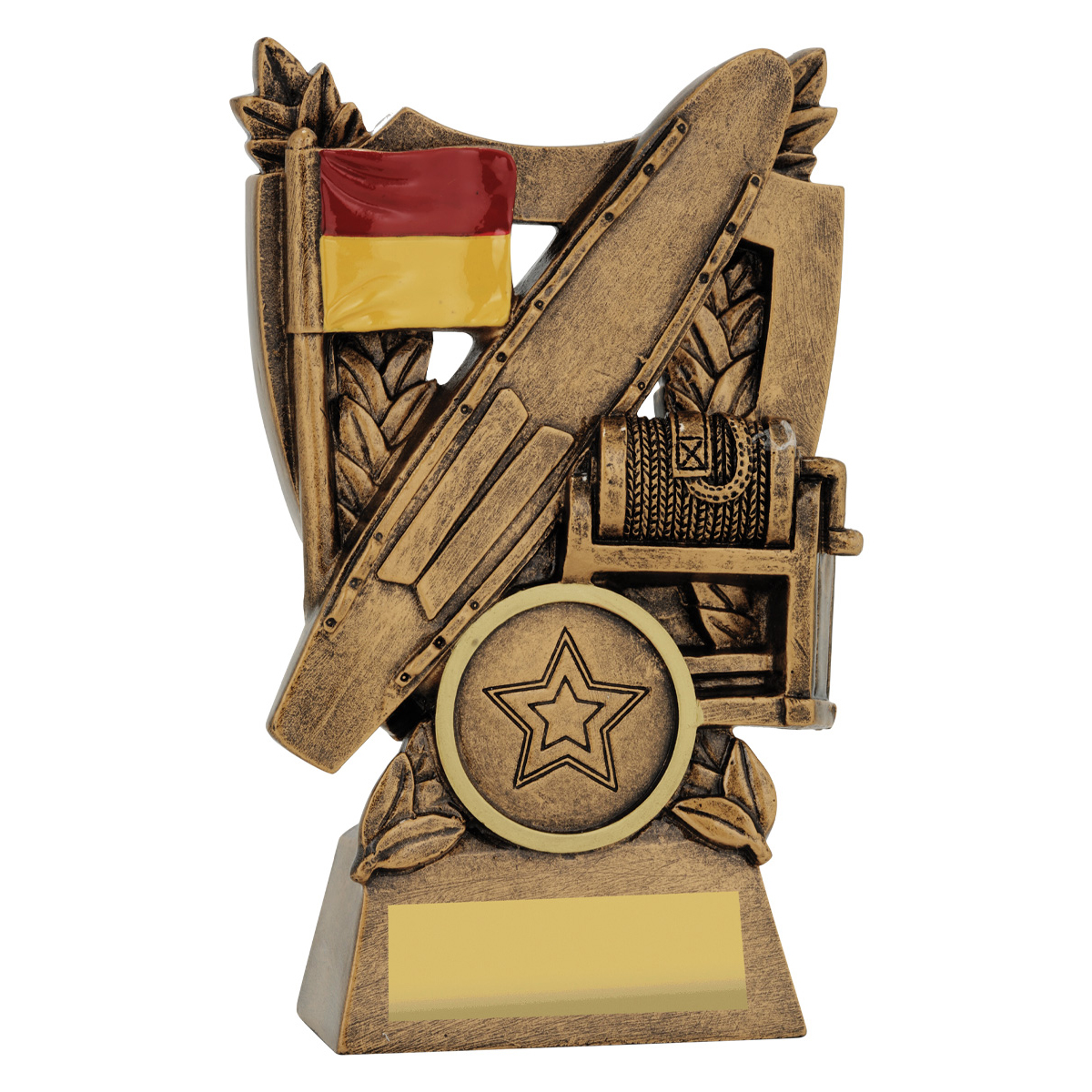 Classic design features traditional elements of the shield and wreath ideal for your top performers. Antique gold trophies present a reliable option and includes space for your 25mm insert if required. Available in 3 sizes.