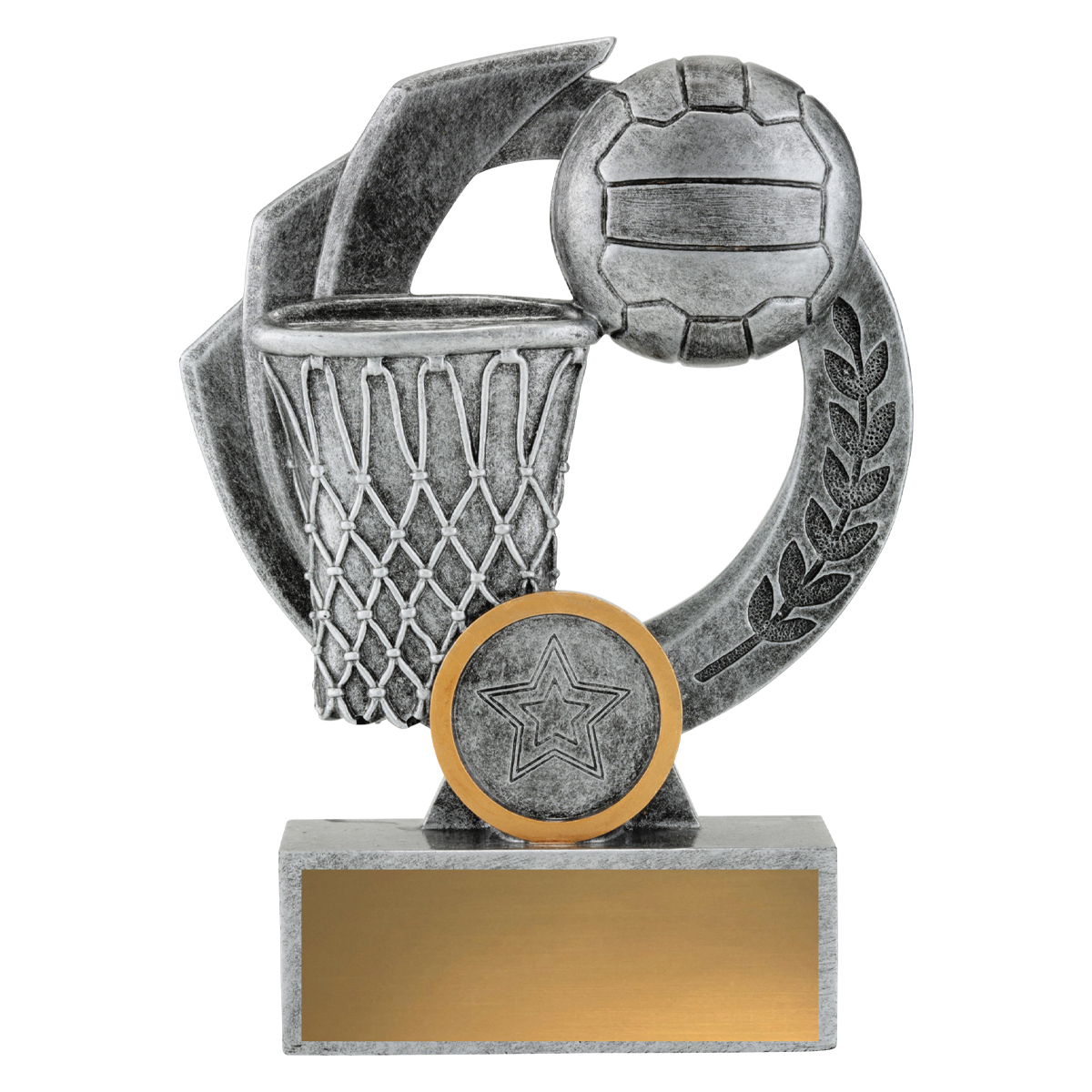 Truly elegant design – the Netball Falcon features iconic wreath on halo like backdrop. Great choice for participation & top players alike at your club.
