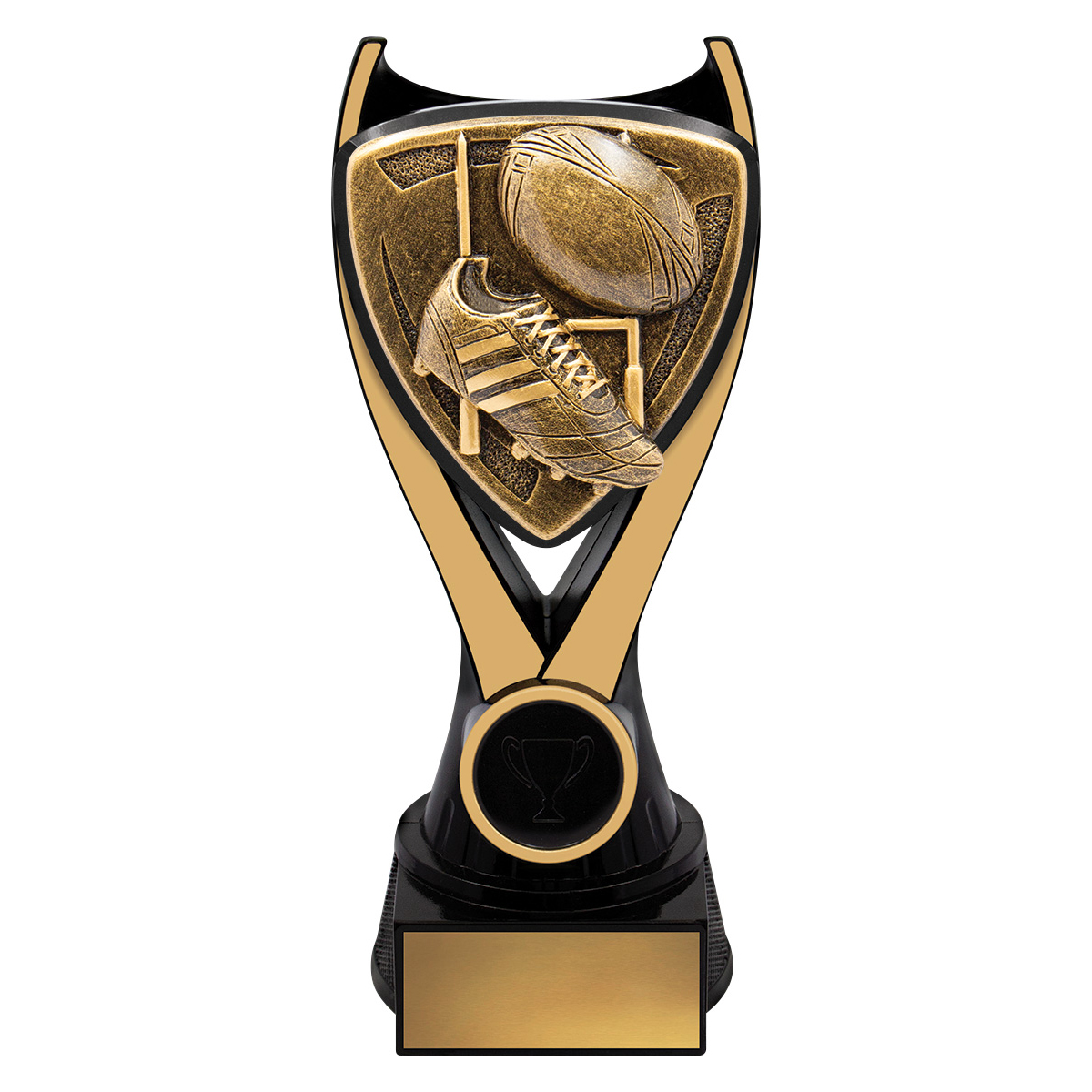 Nova series of trophies present a unique black & gold colour combination with a bold 3D type design to really celebrate the sport or activity of your awards.