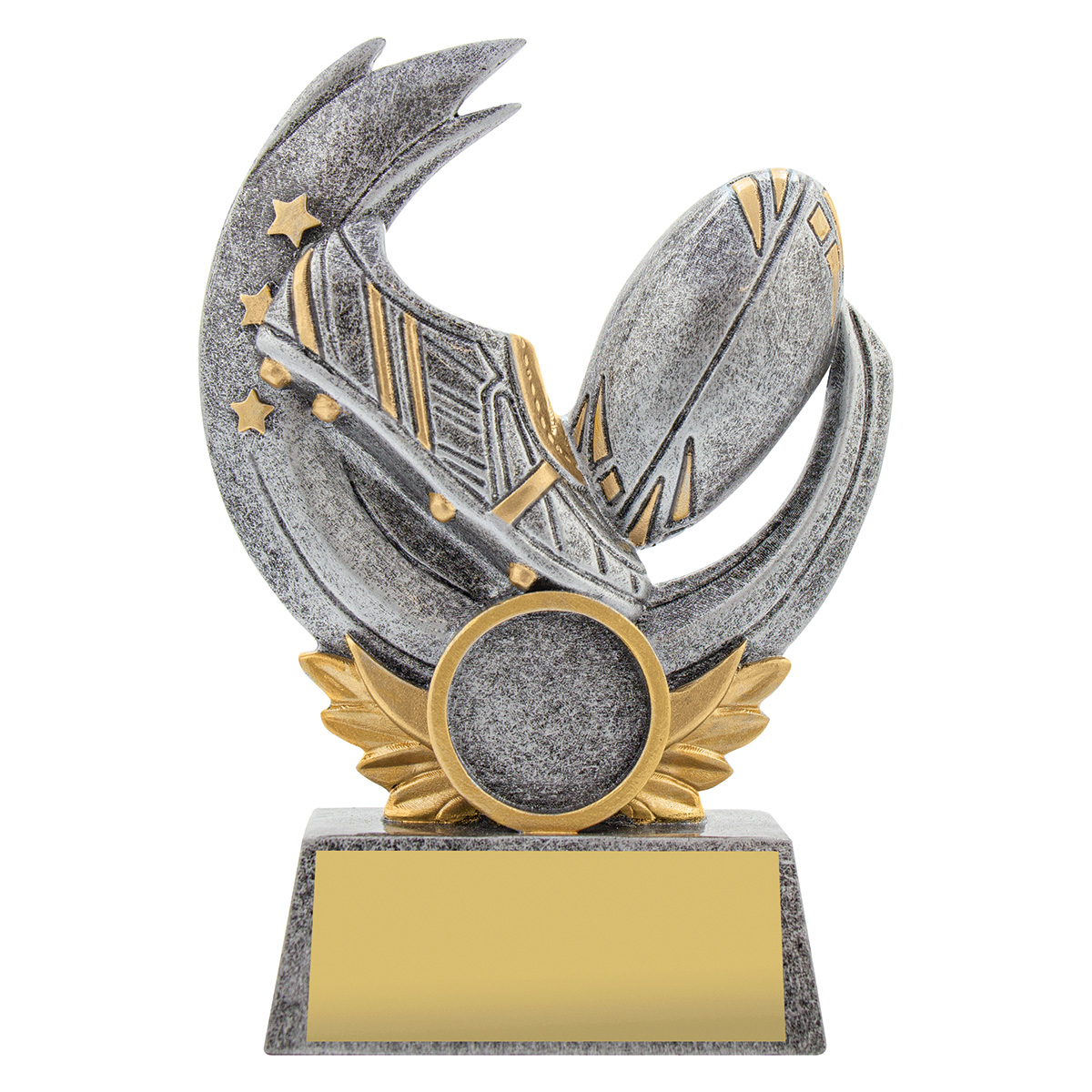 Lunar series of Rugby League / Union trophies project superbly crafted elements on stylish background – design that holds custom logo for your club.