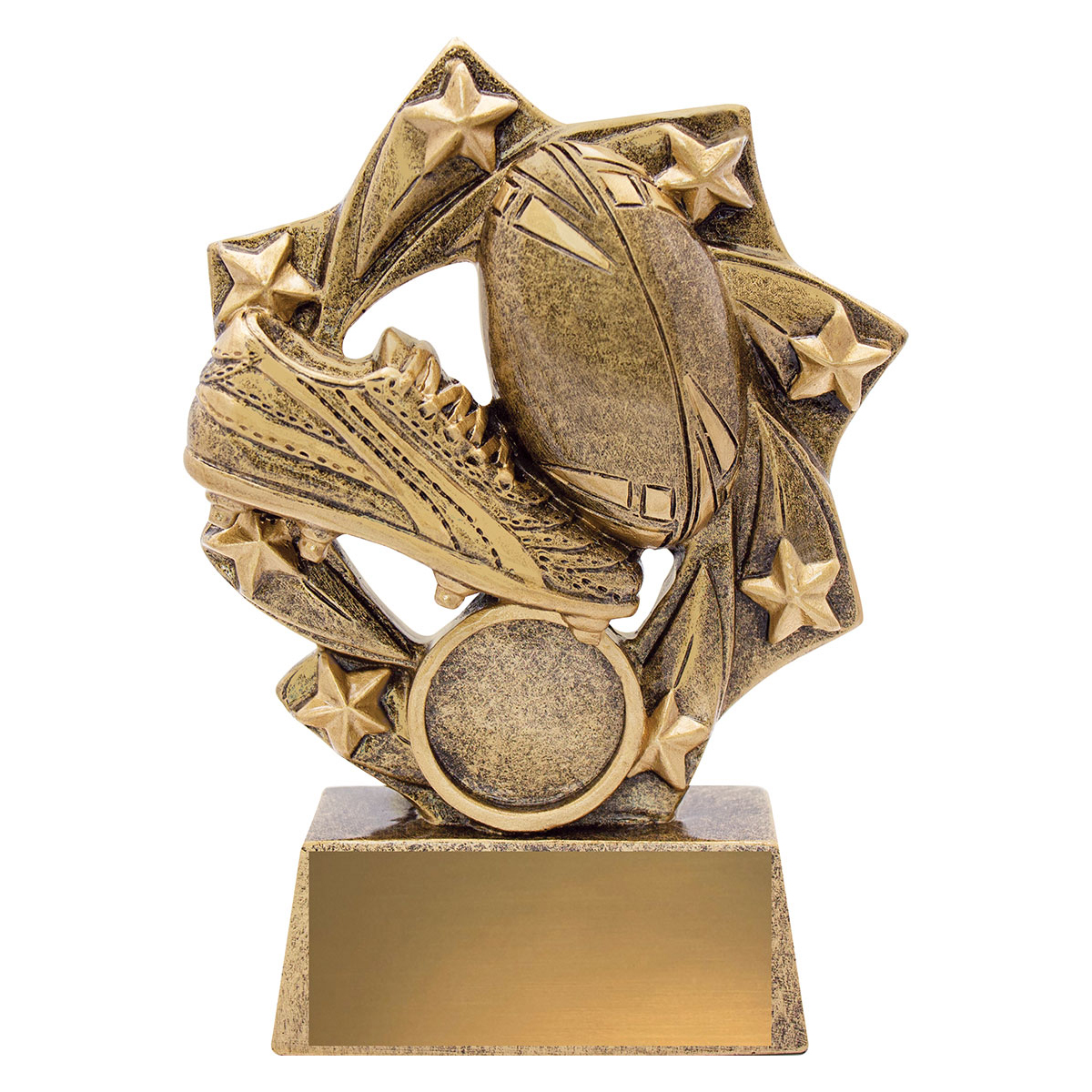 Exciting design of trophies for your League or Union team or club – star inspired design in traditional trophy gold colours. Space for your club logo.