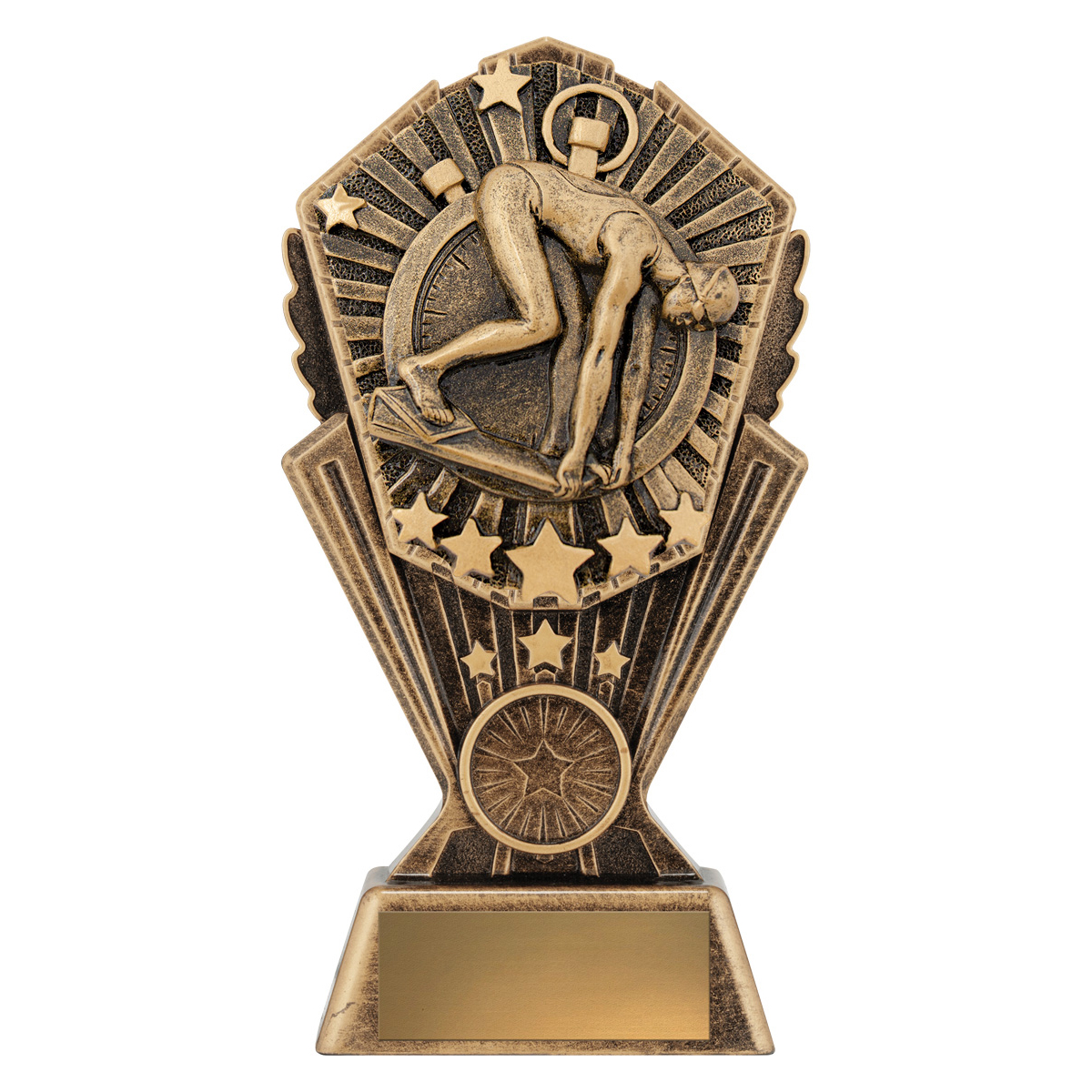 Brilliant ‘Cosmos’ series of female swimming trophies – available in 3 sizes with space for insert.