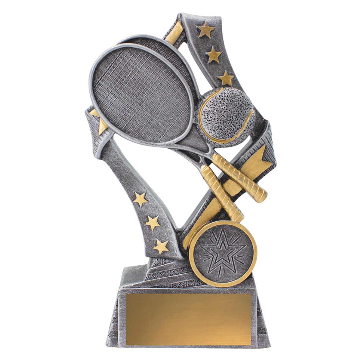 Dynamic tennis trophies perfect for male and female participants at your event. These ‘Flag’ tennis trophies feature a stylish star based design with iconic racquet and ball elements.